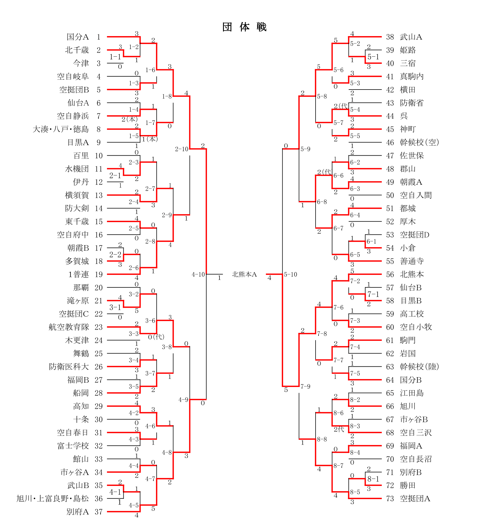 第50回全国自衛隊剣道大会 団体戦トーナメント表