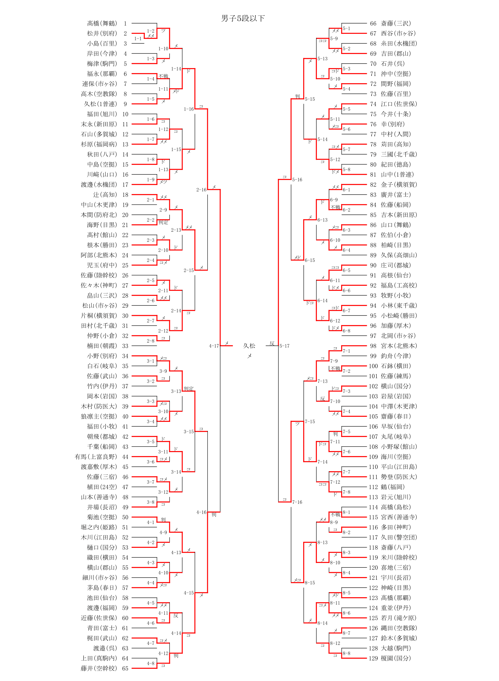 第50回全国自衛隊剣道大会 個人戦 5段以下の部 トーナメント表