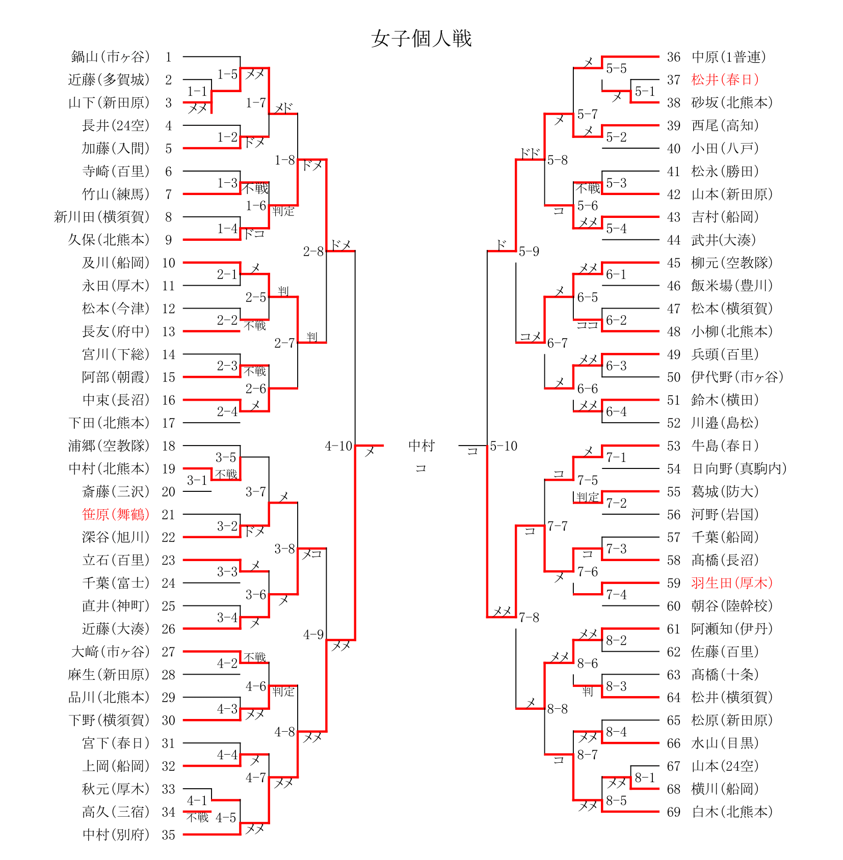 第50回全国自衛隊剣道大会 個人戦 女子の部 トーナメント表