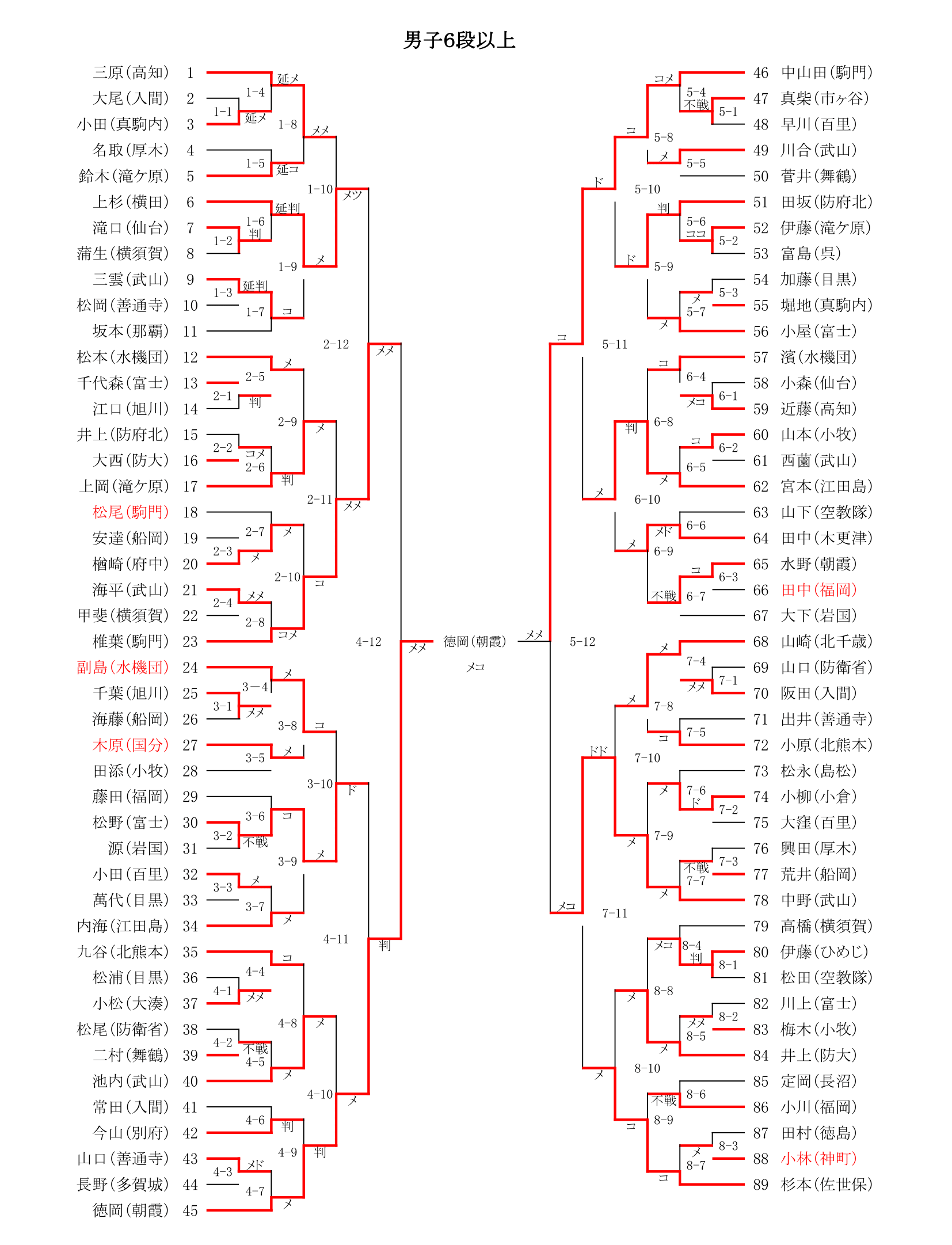 第50回全国自衛隊剣道大会 個人戦 6段以上の部 トーナメント表